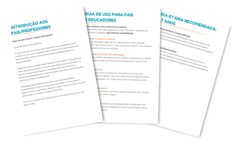 📘 1. Introdução aos Pais e Educadores Entenda o propósito espiritual e educativo por trás de cada atividade. Não é só colorir, é discipular. Nós te damos a visão completa do objetivo do material.